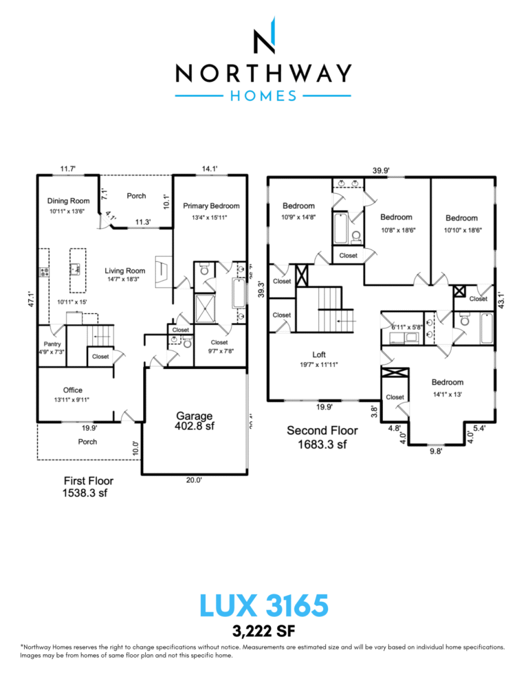 Northway Homes reserves the right to change specifications without notice. Measurements are estimated size and will be vary based on individual home specifications. Images may be from homes of same floor plan and not this specific home.